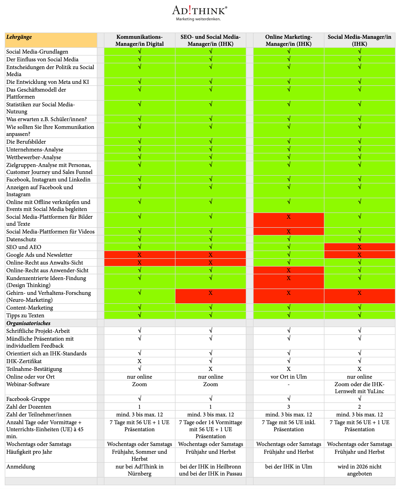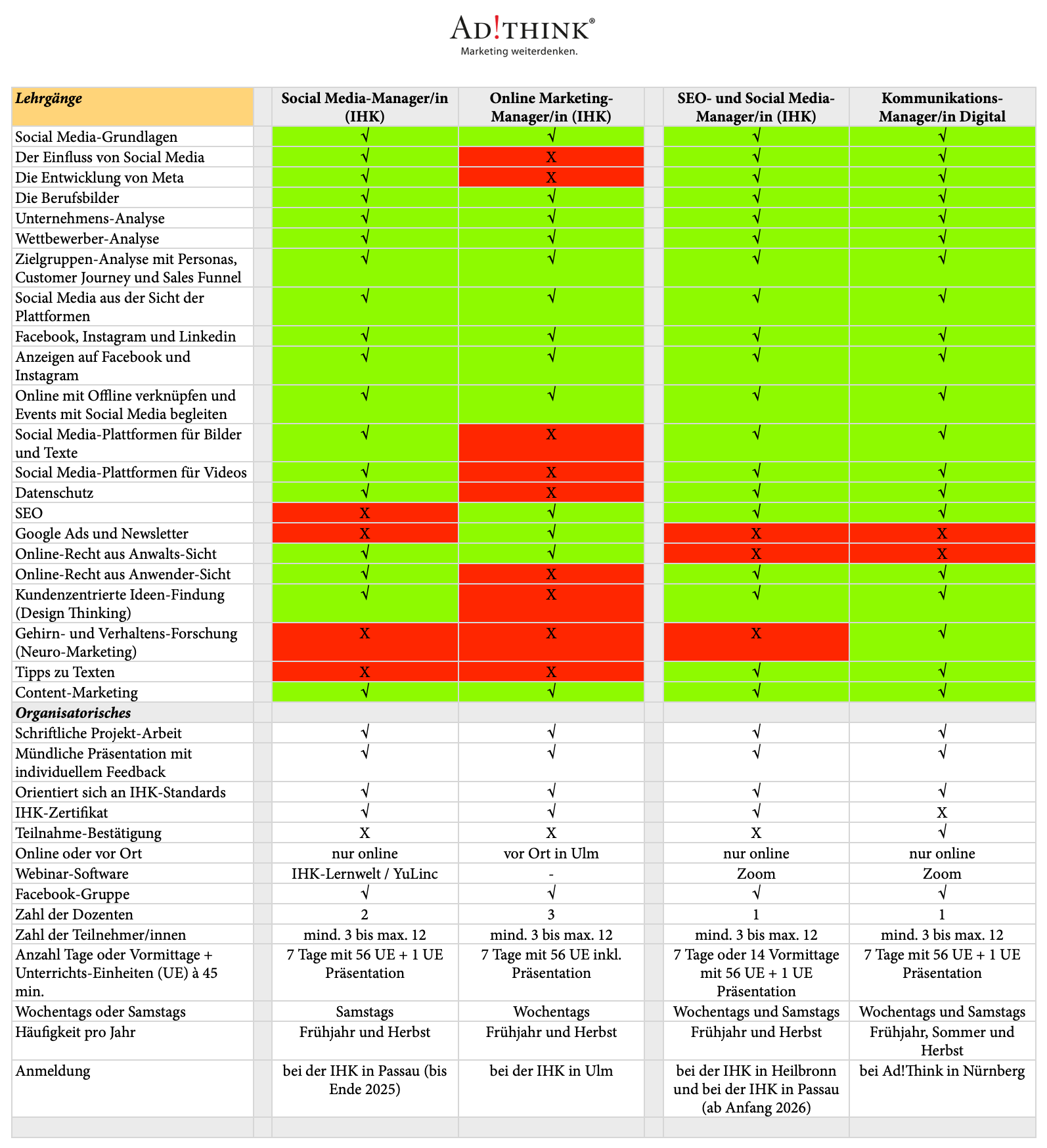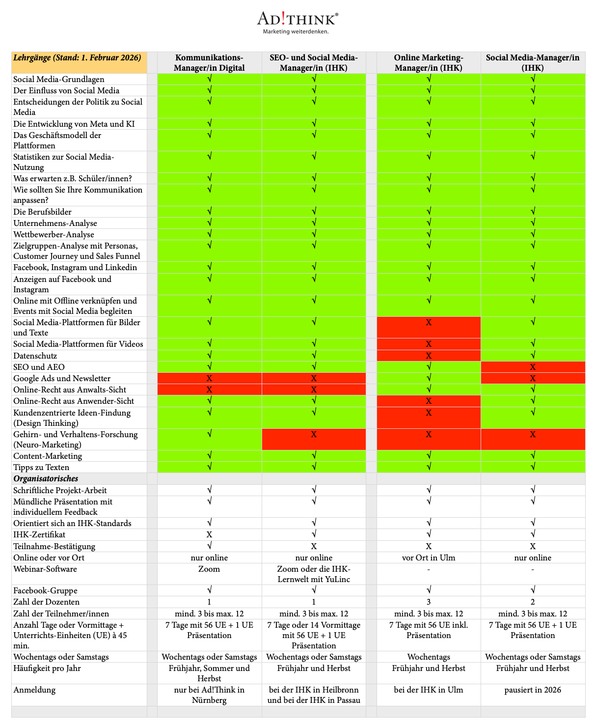 - Im Bereich "Online- und Social Media-Marketing" berate ich mittelständische Unternehmen schon seit Sommer 2006 und seit Herbst 2018 habe ich in über 30 Lehrgängen bereits mehr als 235 Projekt-Arbeiten bewertet sowie individuelle Impulse zur Umsetzung und Weiterentwicklung gegeben, wie Sie auf meiner Seite Lehrgangs-Teilnehmer/innen sehen können.