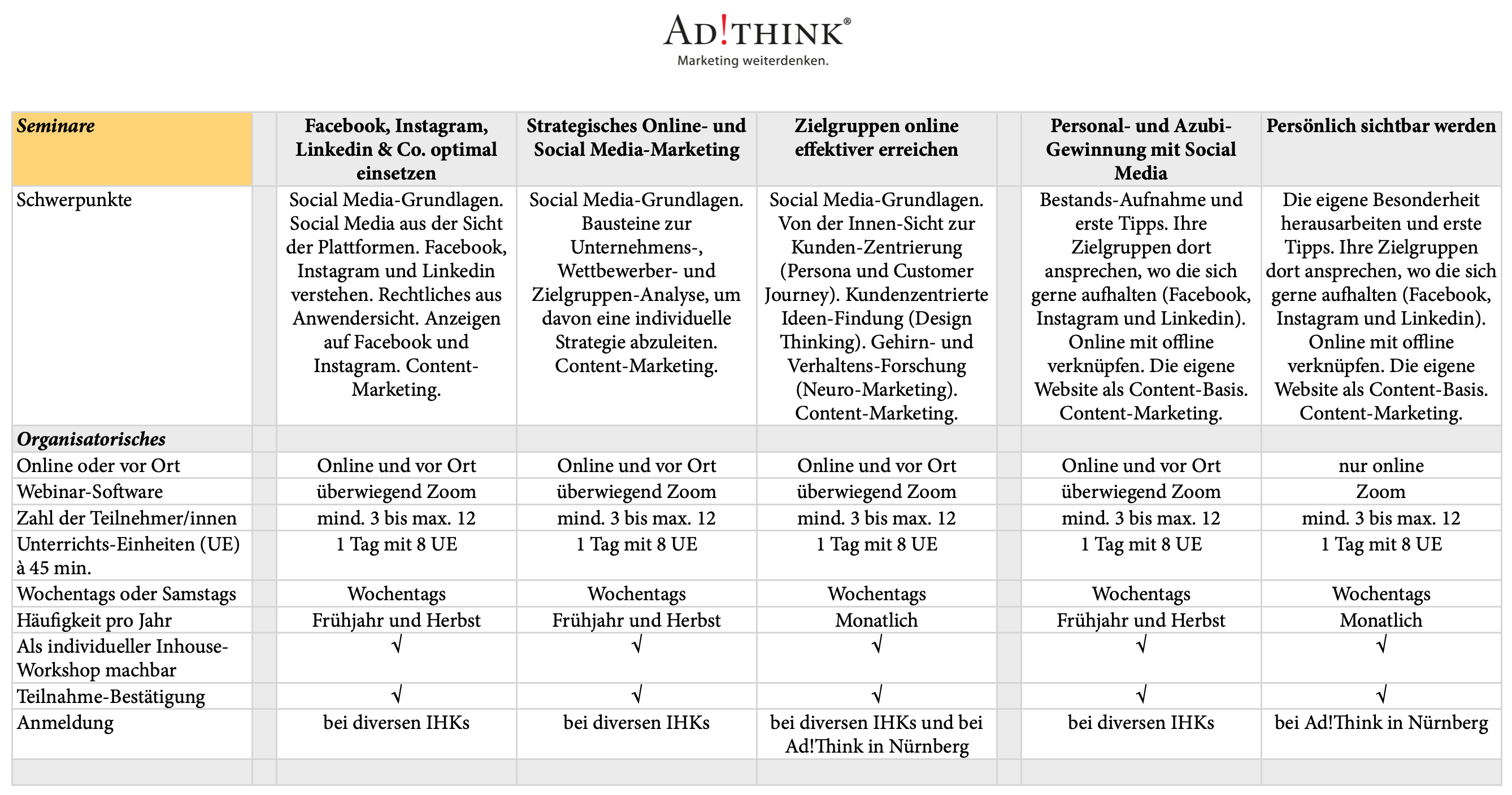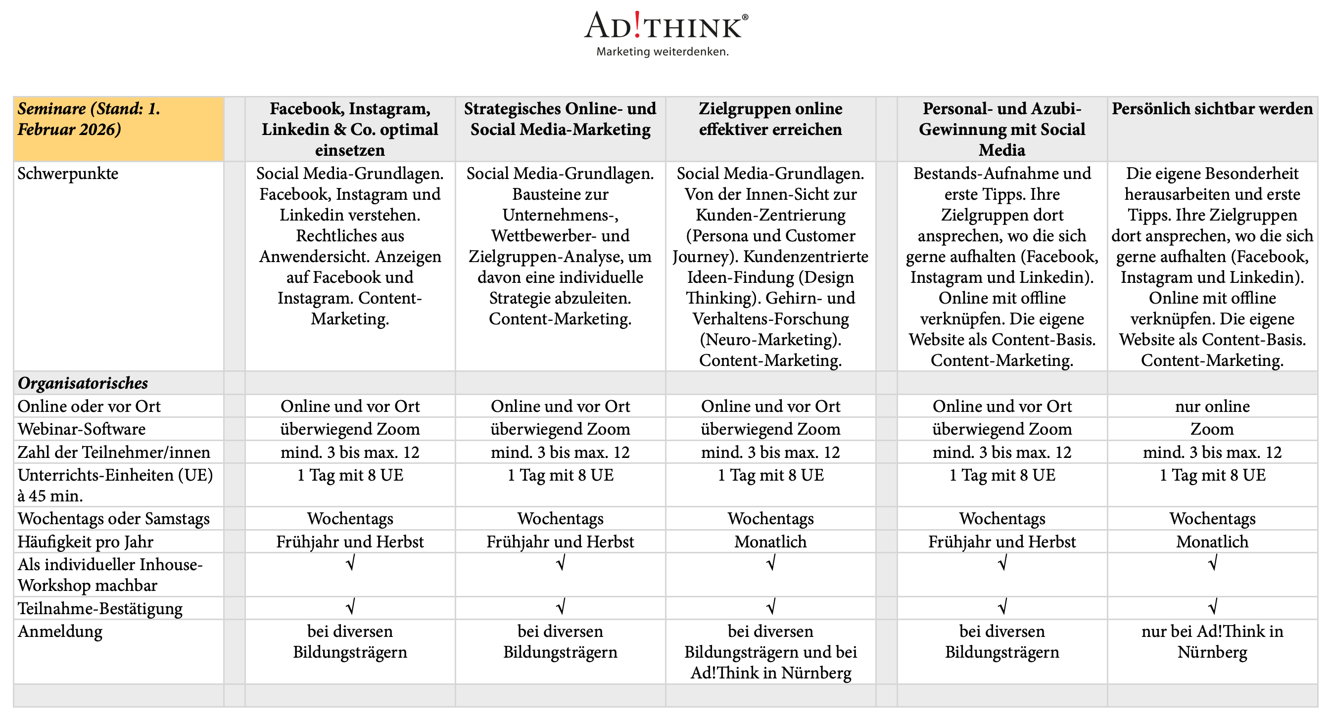 - Die Teilnehmer/innen an meinen Seminaren und Lehrgängen kommen überwiegend aus kleinen oder mittelständischen Unternehmen. Häufig sind sie im "Online- und Social Media-Marketing" noch nicht sehr aktiv oder sie nutzen die Plattformen zwar schon, gehen aber noch nicht strategisch vor.